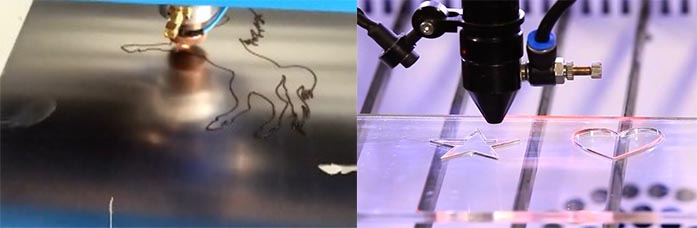 激光切割是光斑照射在材料上時,材料很快被加熱至汽化溫度形成孔洞,按照軟件上設(shè)置好的圖形文字,使孔洞連續(xù)形成寬度很窄的切縫,從而切出精準(zhǔn)的圖案文字。