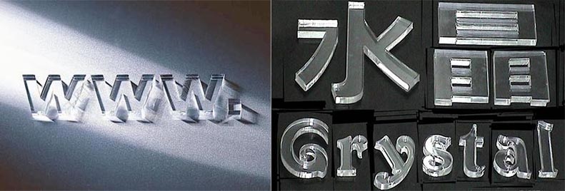 水晶字常用于專賣店展柜眉頭字、公司logo墻、標牌廣告、門頭店招等標識導向系統(tǒng)的制作,越是有創(chuàng)意、有個性,便越是能吸引人,提升自身競爭力。水晶字是用化學藥水將透明有機玻璃跟有色有機片粘合起來組合而成。平時我們見到的水晶字都是雙層的而且比較大、比較引人注目,在制作水晶字前都是將透明玻璃和有色有機片分開雕刻切割。